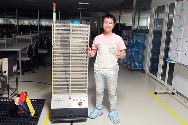 AGV milkrun được tùy biến từ xe tự hành AGV model UT200 với khung chứa hàng phía trên theo yêu cầu khách hàng.